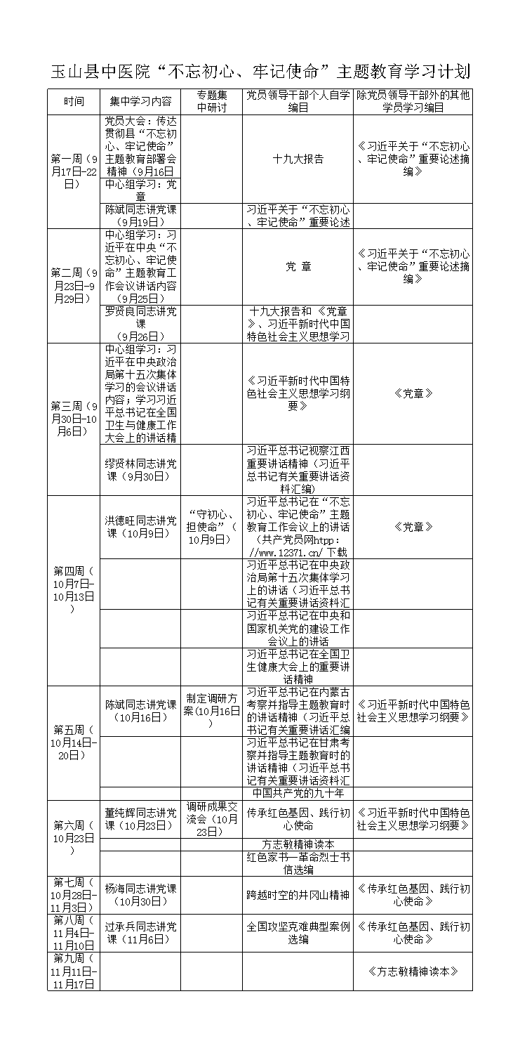 玉山县中医院“不忘初心、牢记使命”主题教育学习计划
