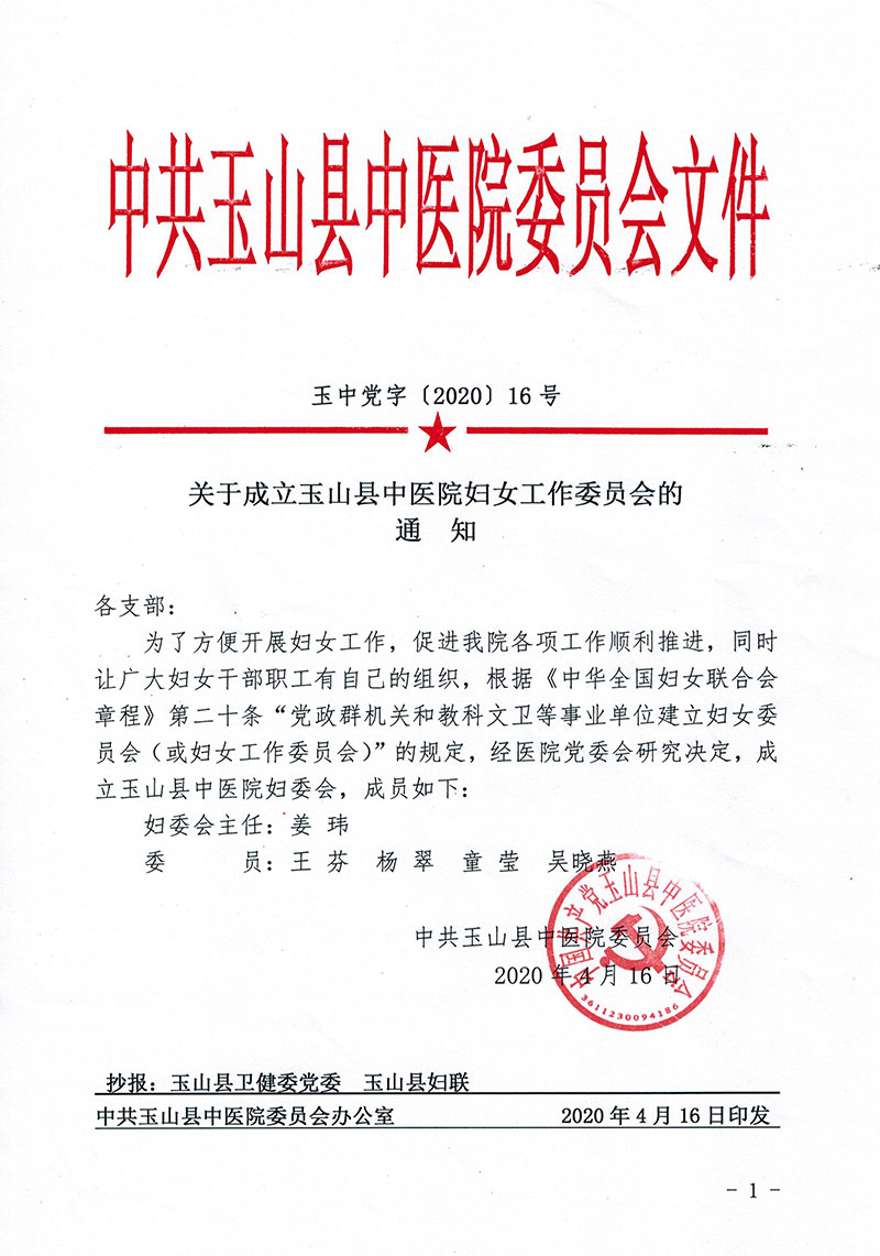 关于成立玉山县中医院妇女工作委员会的通知